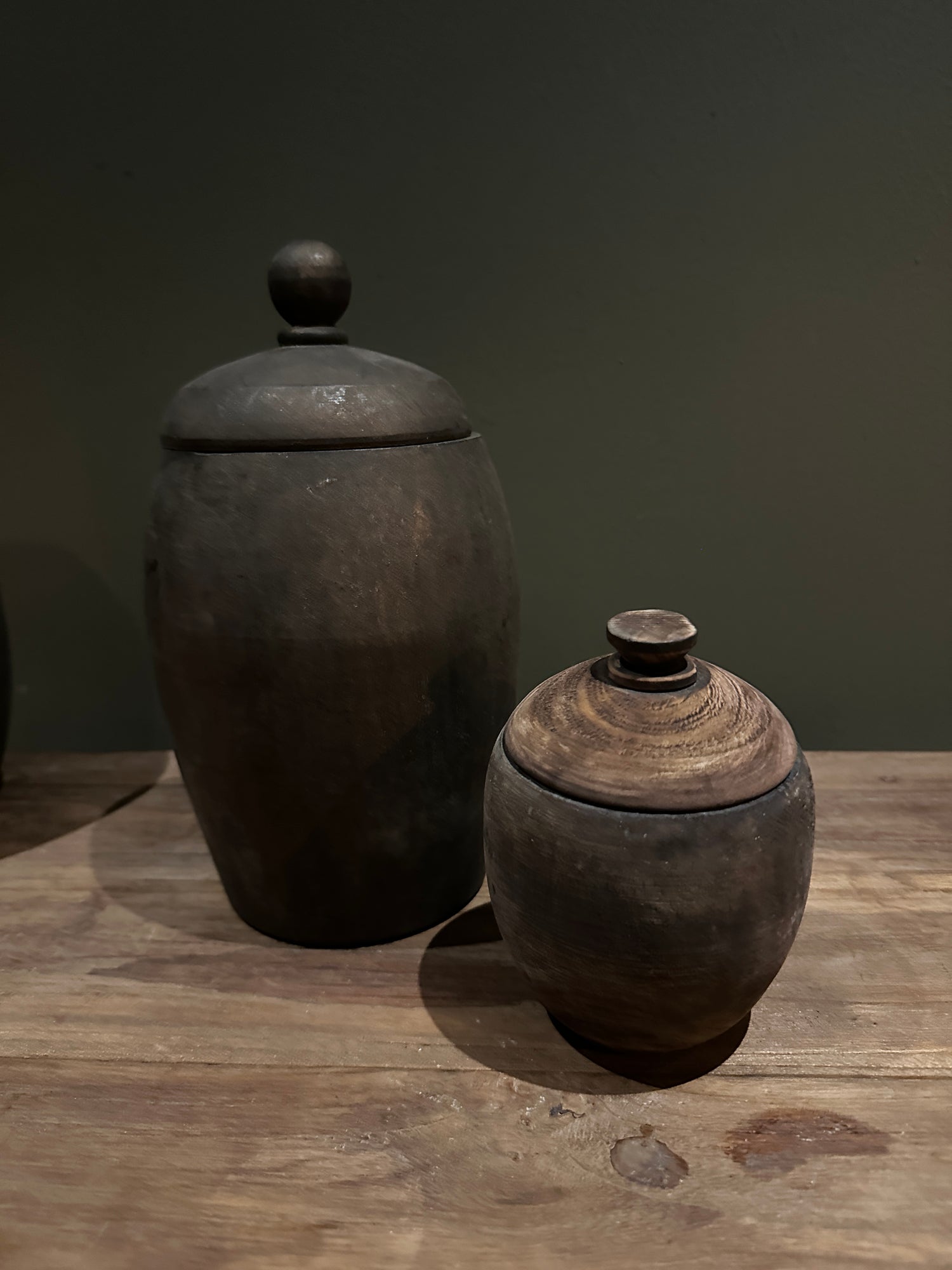 Verschillende potten en kruiken Aardewerk & hout