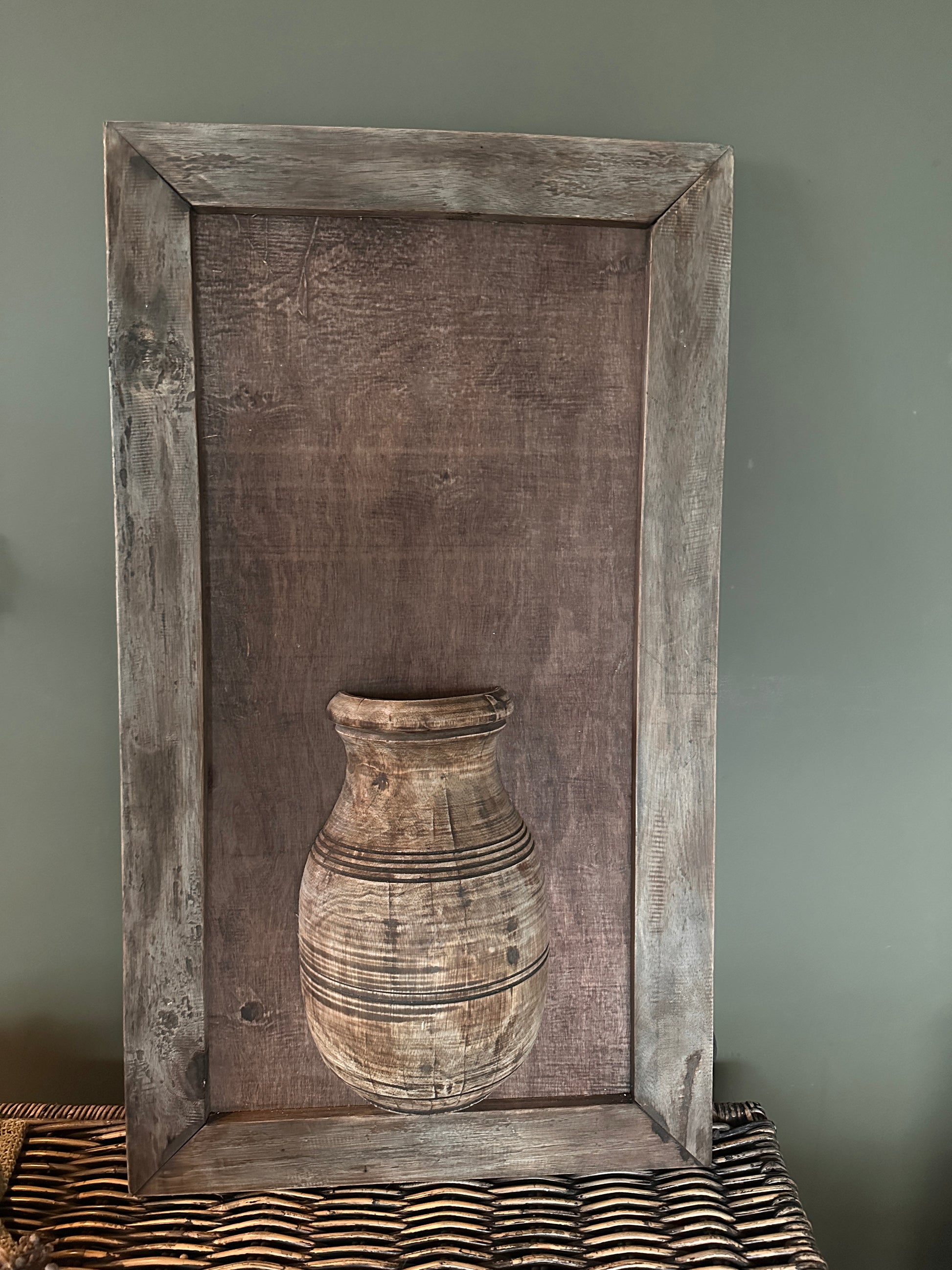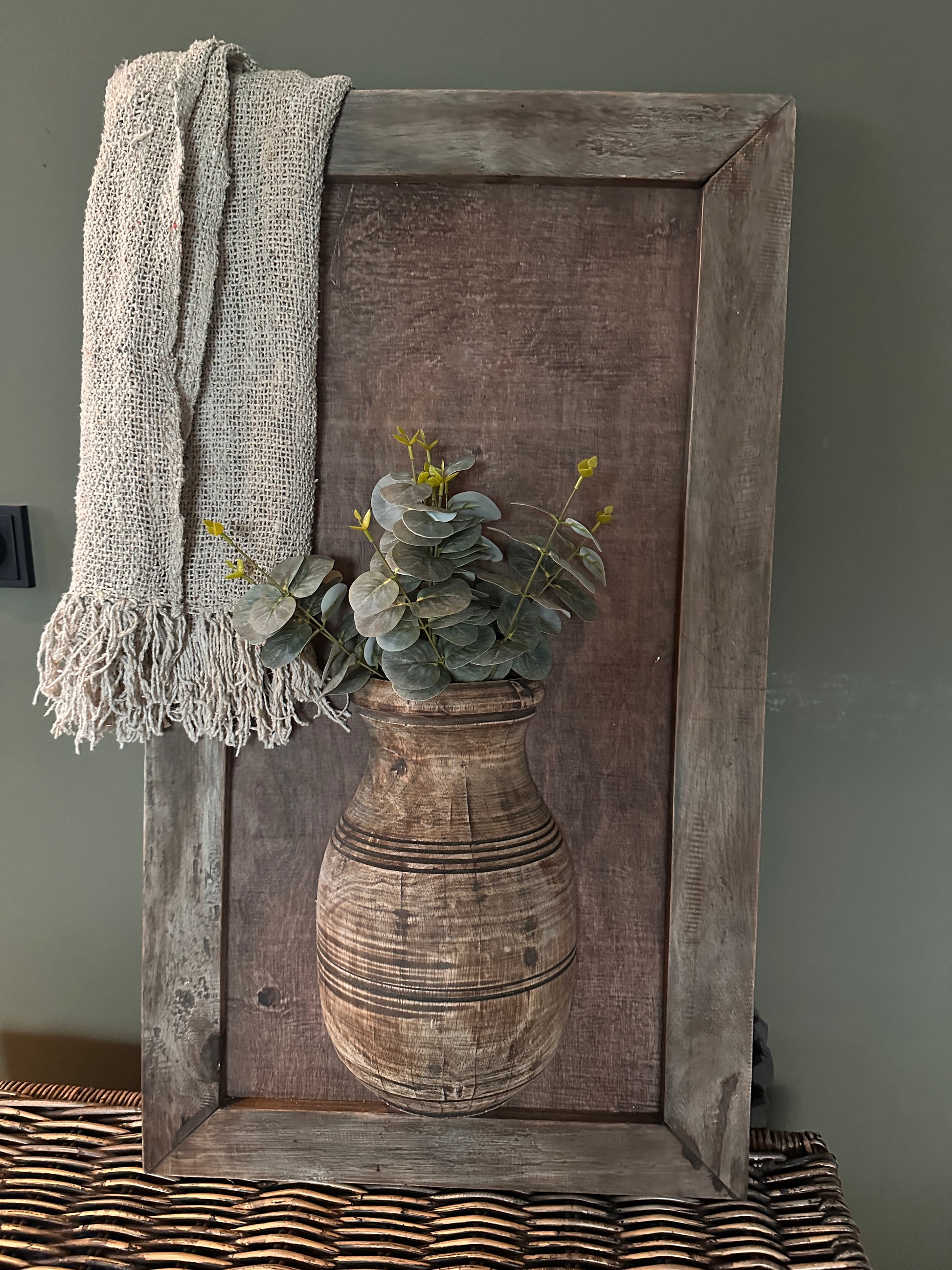 Stoer houten wandbord met vaas groot