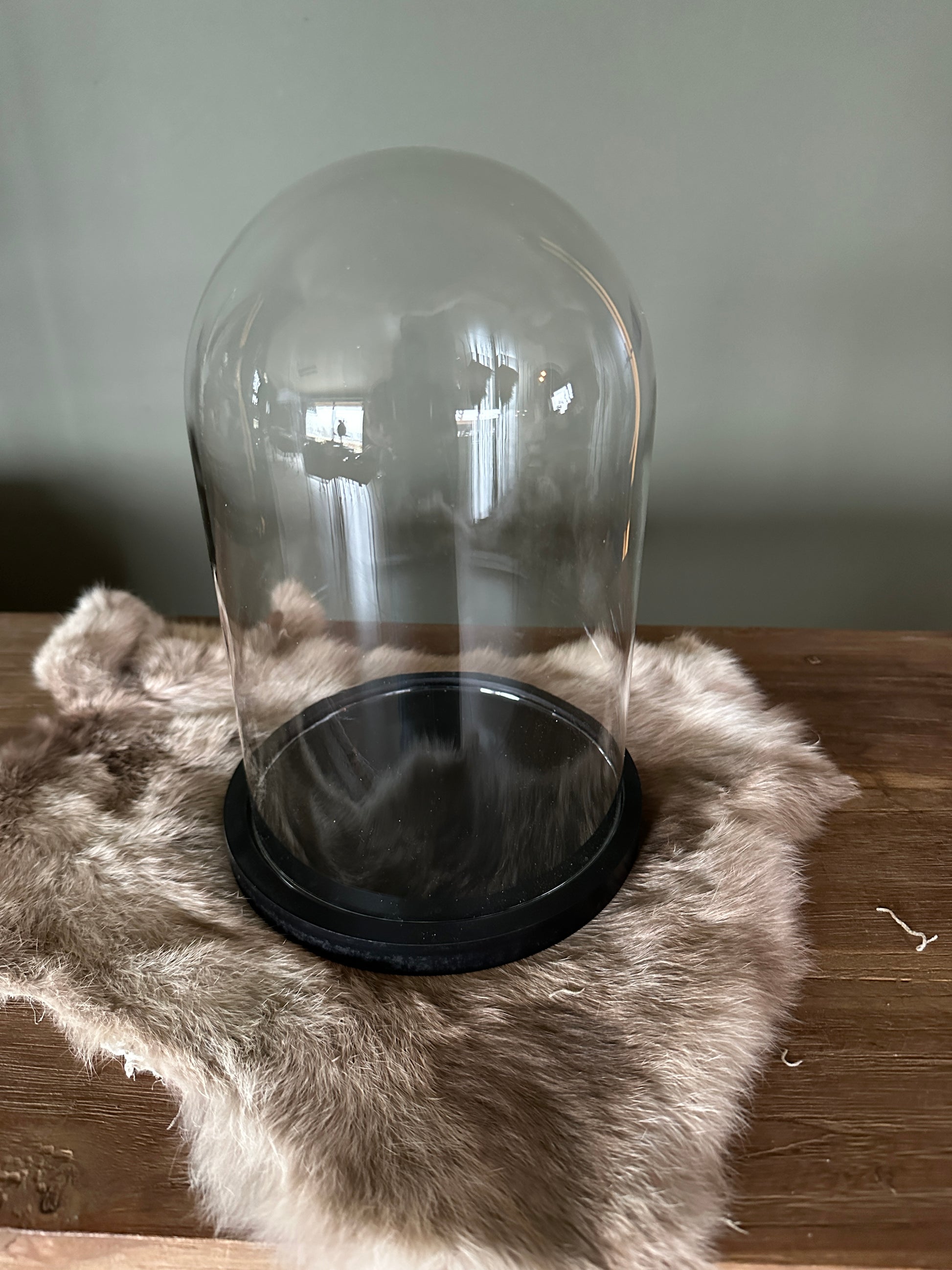 Glazen stolp met zwart plateau